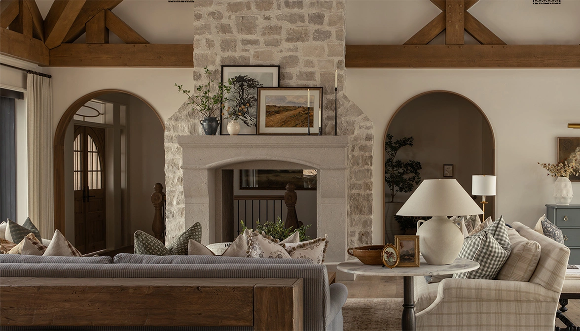 The vision for Auberge de la Famille was to create a home that feels warm, timeless, and welcoming. With soaring timber beams and layered textures, the living spaces exude comfort and sophistication. The kitchen, with its open shelving and elegant detailing, offers both beauty and function-perfect for gathering. Every detail was thoughtfully designed to create a retreat where family and friends can come together, relax, and make lasting memories.